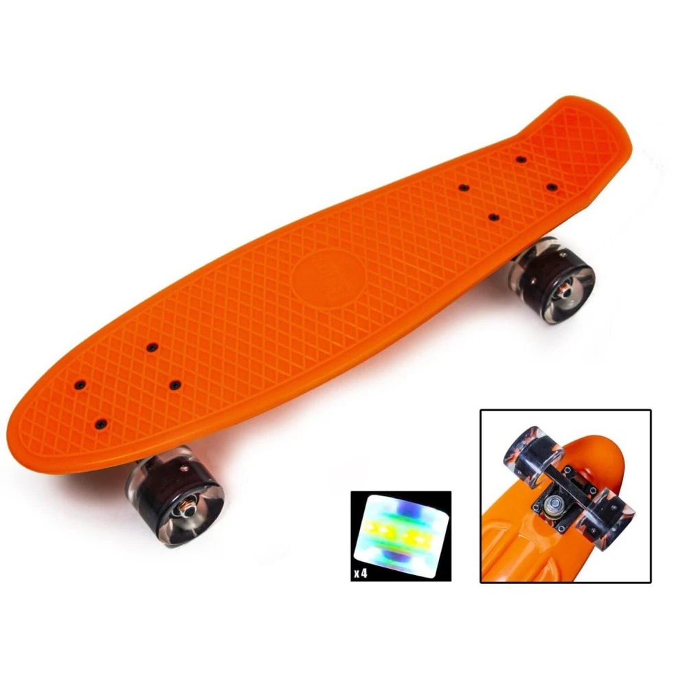 Zippy Board 22" LED Колеса – это серия пенни борда, которая представлена светящимися колесами. Колеса освещаются электромагнитными катушками, расположенными между колесными подшипниками. Длина световых катушек данной модели составляет 600 километров - это однотипные колеса. Подшипники относятся к классу Abec9.