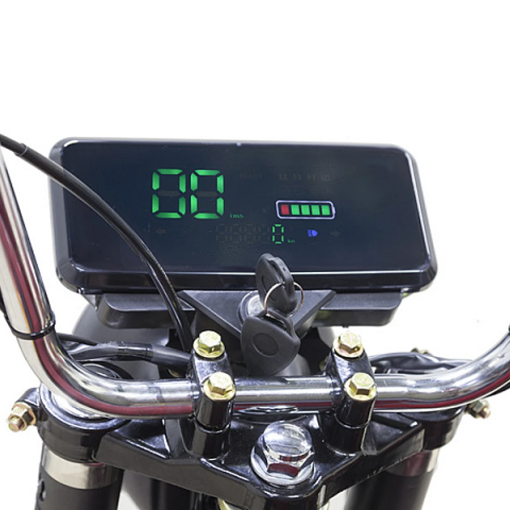 Всесезонная техника оснащена зеркалом заднего вида, мощной светодиодной фарой, удобным комфортным сиденьем. С такими характеристиками управлять электротрициклом удобно.