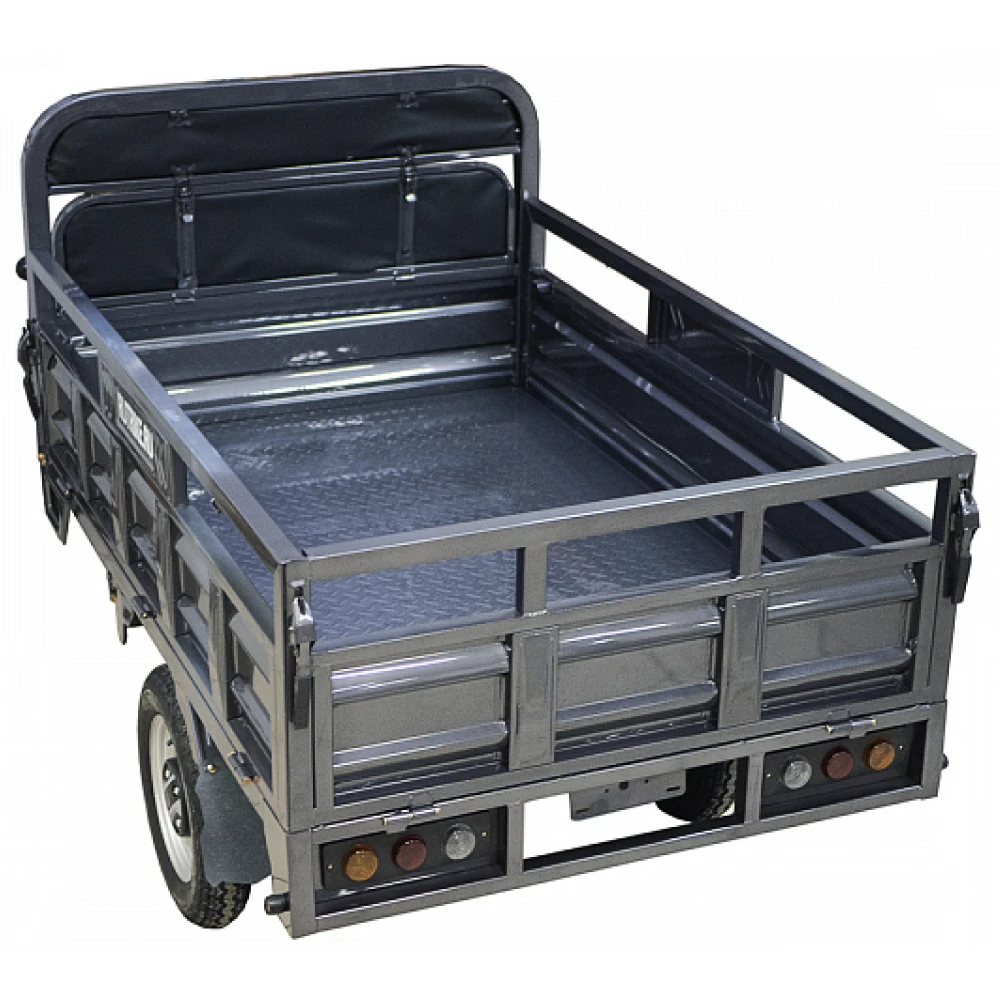 Грузовой электротрицикл Rutrike D4 NEXT II 60V1500W синий – мощная техника в презентабельном дизайне моментально привлекает внимание представителей бизнеса и фермеров. Объемный багажник, вместительное виденье, лучшие параметры удобства и комфорта заставляют внимательнее присмотреться к техническим характеристикам. Наш интернет-магазин предлагает купить электротрицикл по разумной стоимости. Каждому покупателю гарантирована бесплатная консультация, помощь в оформлении заказа. Модель оснащена мощным движком на 1500 Вт, который в сочетании с емкой батареей (от 55А*ч) обещает максимальный разгон до 25 км/час, которого хватает на преодоление дистанции до 80 км. Производитель обращает внимание, батарея не входит в комплектацию. Купить АКБ, подобрать максимально совместимую можно благодаря нашему интернет-магазину. Из других преимуществ производитель выделяет максимальную оснащенность функционалом. Техника оборудована зеркалами заднего вида, гидравлической амортизационной подвеской, информационным дисплеем. Имеется дополнительное место для пассажира. Широкая платформа для ног в сочетании с сиденьем исключает дискомфорт и проблемы с позвоночником. Широкие колеса (переднее х заднее - 3,50-R12 х 4,00-R12) отлично сцепляются с грунтом. Вместительный кузов размерами 3270 x 1200 x 1450 ДхШхВ – настоящая находка для предприимчивых личностей