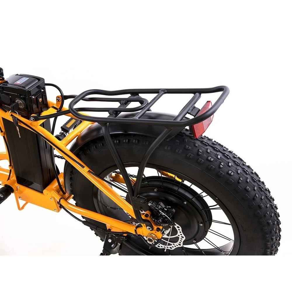 Техника создана для эксплуатации по бездорожью и в пределах города. Современный дизайн делает модель заметной на фоне других участников движения. Движок мощностью 500Вт вместе с емкой АКБ позволяет развить скоростные характеристики до 39 км/час, и преодолеть приличное расстояние на одной подзарядке. Внедорожная резина вместе с 20-дюймовыми колесами не знает препятствий. Преодолевает возвышенности, бездорожье и глинистую почву. Удобное, повторяющее анатомические части тела седло не провоцирует появление усталости и проблем с позвоночникам. Для увеличения пробега ездок может переходить на ножной режим педалирования.