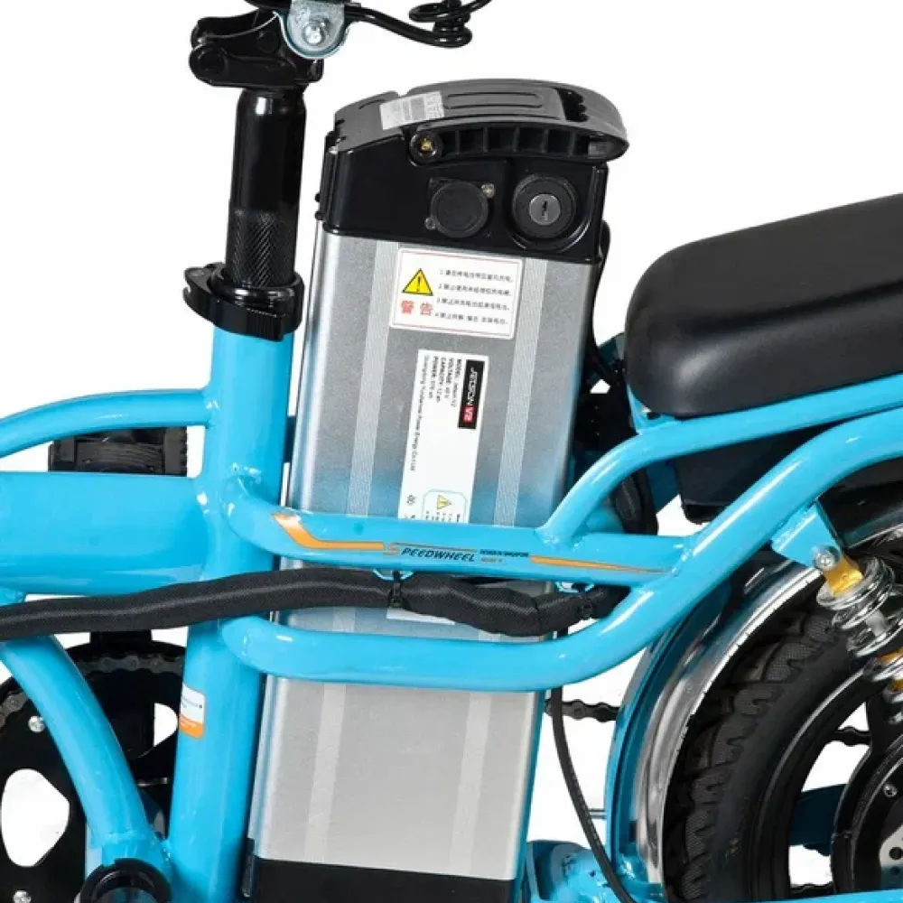 Модель оснащена 14-дюймовыми колесами, механической тормозной системой и амортизаторами, которые в сочетании обеспечивает высокое качество и плавность езды в разных условиях эксплуатации. Для заказа электровелосипеда предлагаем связаться с нами по телефону или в онлайн-режиме. Ждем ваших звонков!