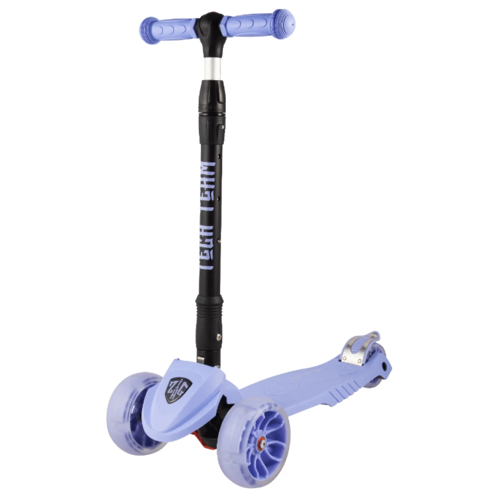 Самокат ZigZag 2020 – кикборд высокой надежности и проходимости. Оснащен светящимися колесами и инновационной системой складывания. Трансформация техники проводится легким движением, процесс напоминает автоматический. Параметры телескопического руля по регулируются по высоте в пределах 66-83см, руль фиксируется в трех положениях.